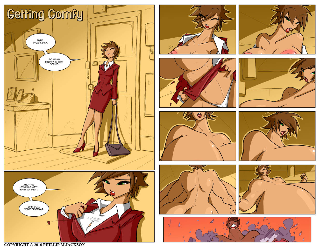 (Growth) 10 Page comic. A tired nine-to-fiver busts out of her office