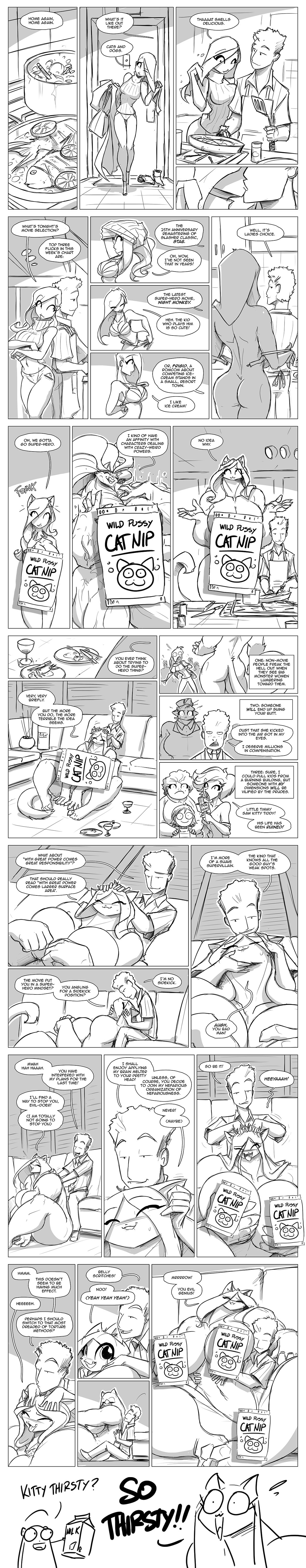 (TF/Adult content) A 24 page comic in which a loving couple sit down to watch a movie.... only one of the pair is a giant, frisky cat-creature.