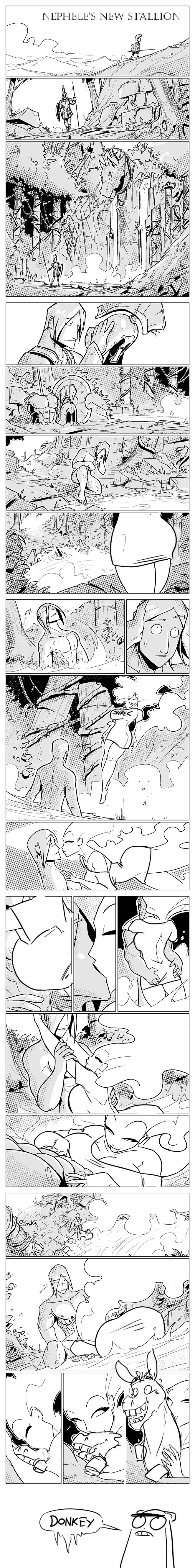 (TF/Inflation/Hyper/Adult content) A 12 page comic in which the cloud nymph, Nephele, reforges a Greek warrior into a centaur.